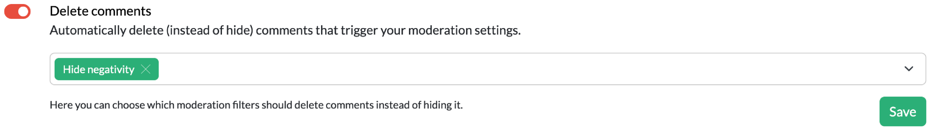 2. Automatically hide (or delete) comments that trigger specific moderation filters.